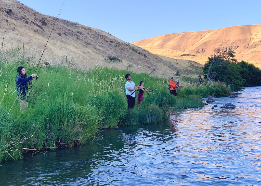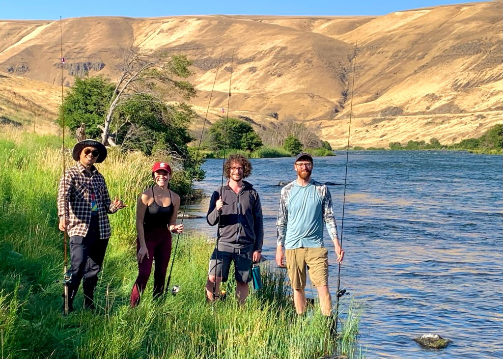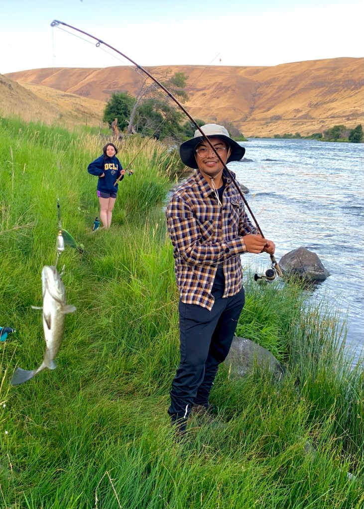 While most members of the other labs slept in on the camping trip, the Frank lab (and friends) rolled out at 4 a.m. to fish the Deschutes. Coached by Dr. Frank. Xander successfully landed a bass within his first three casts!