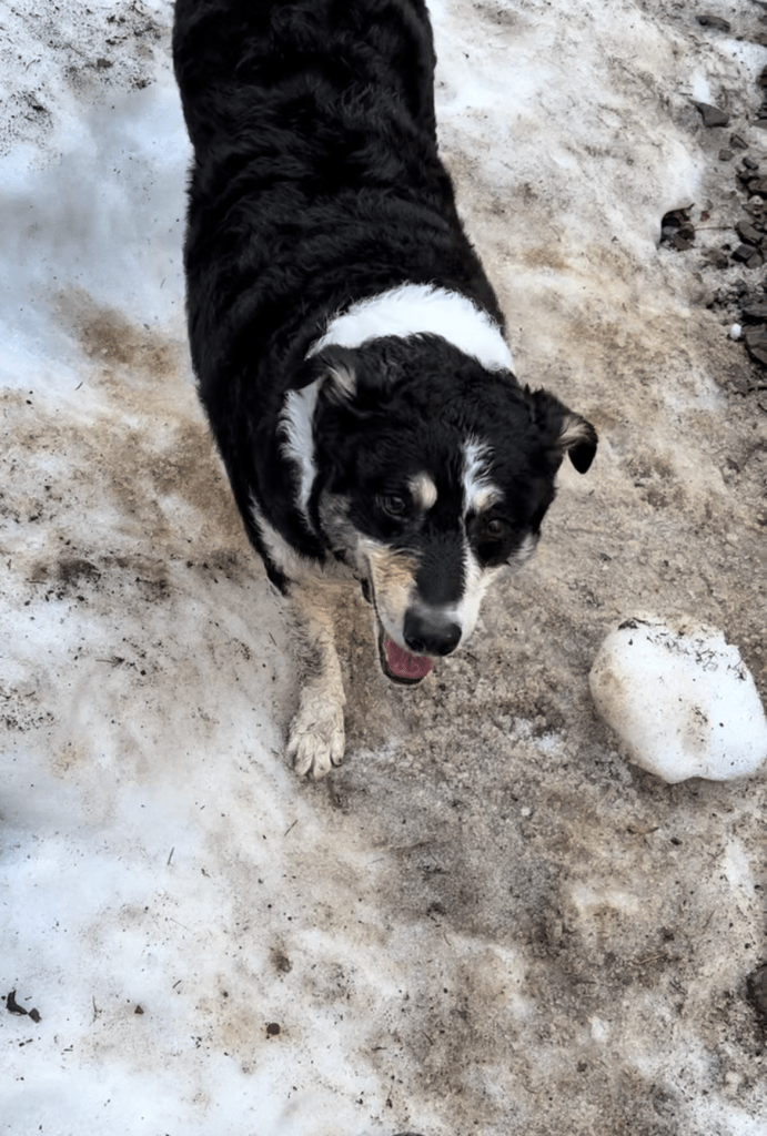 We also discovered that Liz really loves snow and will go to great lengths to rub the dirtiest snow into her coat. It’s time for a bath, Liz!