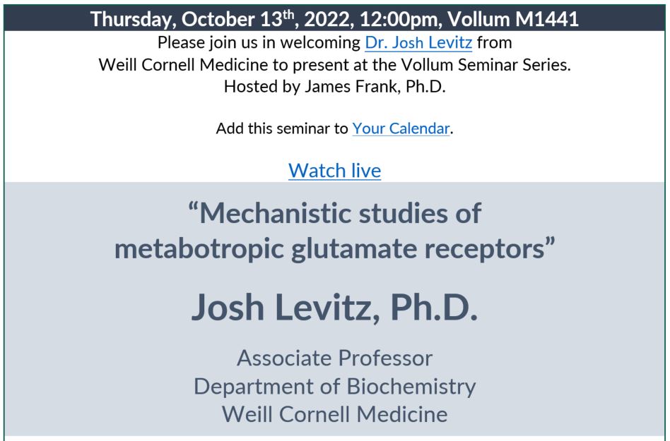 We were excited to host Dr. Josh Levitz (https://www.levitzlab.com/) to give a seminar in the Vollum this week.